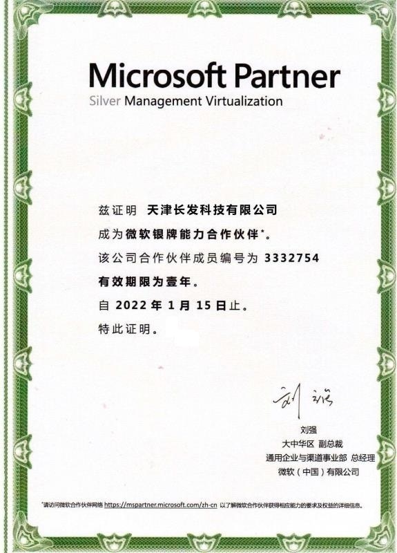 授予長發(fā)科技微軟銀牌合作伙伴